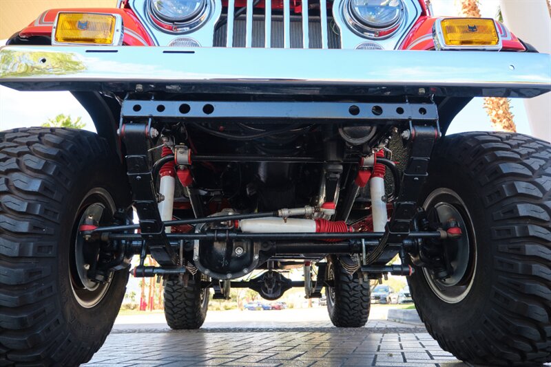 It sits on 15” Mickey Thompson wheels with 33” tires and a properly set-up lifted suspension. Exterior highlights include a Bestop bikini top, LED lighting, driving lights, and chrome bumpers, all in excellent condition.